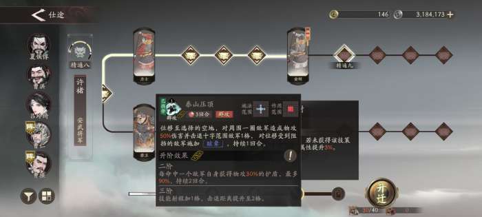 许褚第二个神技就是【裸衣鏖战】,能给对面上50%的物抗消减,这技能在打单体boss的时候非常好用,再加上【裸衣】是区别红色debuff和绿色的buff,也不会被抵抗和祛除,还能辅助第一策略卡天降奇兵的物攻。