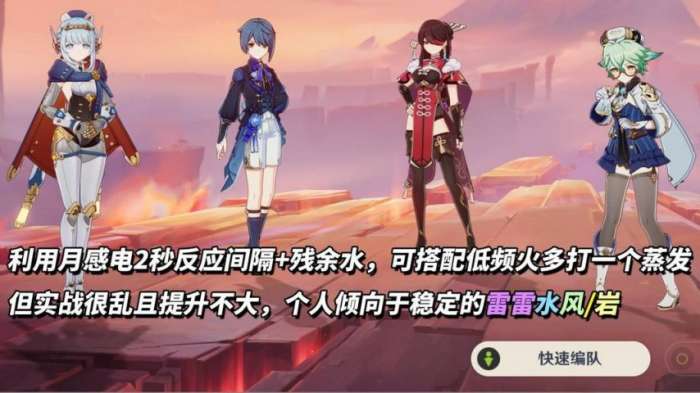 减抗对月感电的伤害提升明显,在队伍内尽可能搭配相关角色,可显著提高你的DPS,推荐【伊涅芙+雷+水+风/岩】元素构成。