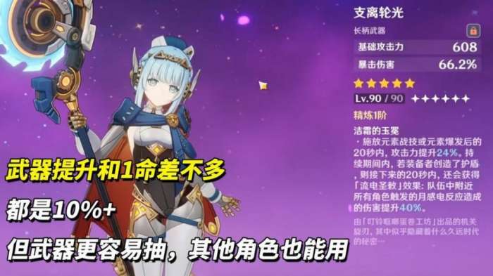其中1命与武器提升都在10%+,既然如此,冻梨会优先考虑所需抽取期望更低的武器,同时攻暴伤属性也能给其他角色当专武下位替代。