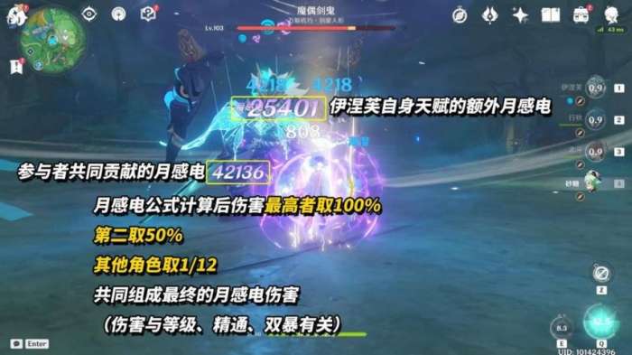 月感电伤害基本取决于全部参与反应角色中,精双暴面板最高的2位角色,最高者100%+第二50%+其余角色1/12。