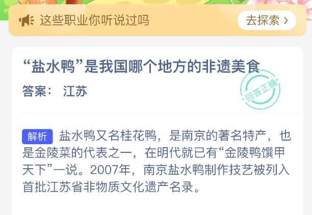 以上就是“盐水鸭”是我国哪个地方的非遗美食?支付宝蚂蚁新村最新答案2026年4月23日,更多精彩内容,请点击关注pk游戏网更新!