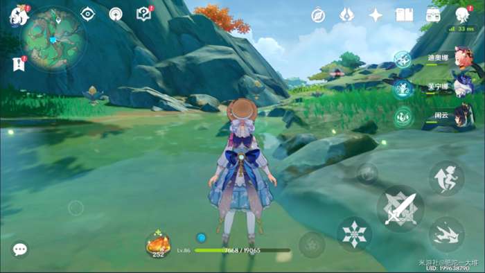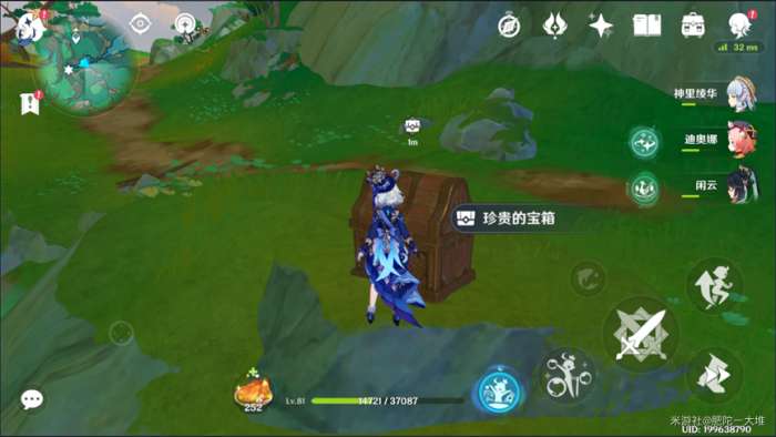 2、这里解决的莲花灯从【流水莲花灯】初始位置到宝箱位置沿河分布。共有6盏莲花灯。这里可以坚持到前两个莲花灯可以点亮的位置,然后一路跑到最后一个莲花灯就完成挑战了(我用福妮娜的时间足够了)。