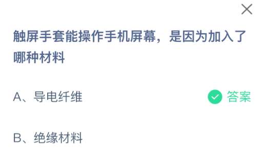 1、题目:触屏手套能操作手机屏幕,是因为加入了哪种材料