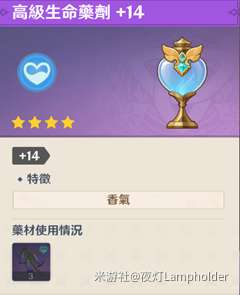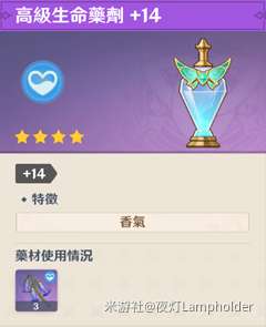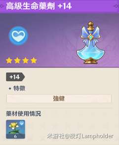 第一种药剂是使用甜甜花达到200%调合率所炼制而成的高级生命药剂+14