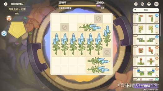 2. 尽量提高复合药剂等级: 特征药材放入各放入两个 → 功效药材各放2个先确定功效 → 选择1种功效药材放入,放入直至变成单功效药剂 → 放入另一种功效药材,放入直至再次变回复合药剂 → 上两步重复至无法再放置 (期间还需留意特征的情况) → 放入其他药材尽量填补空位 (注意!如该药的特征不是需要的特征,只能放一个、优先高质量、其次纯功效、最后「均衡型」药材)