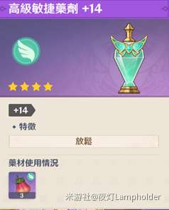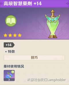 ‧複合药剂和纯功效药剂要达到相同等级 (如生命‧力量和生命药剂都达到高级+14) ,複合药剂需要更多的经验