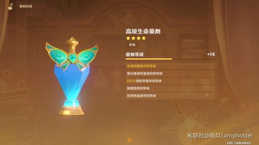 第三瓶药剂是只使用琉璃袋达到120%所炼制出的高级生命药剂 + 14