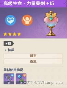 第三种药剂是使用薄荷达到200%调合率所炼制而成的高级生命‧力量药剂+15