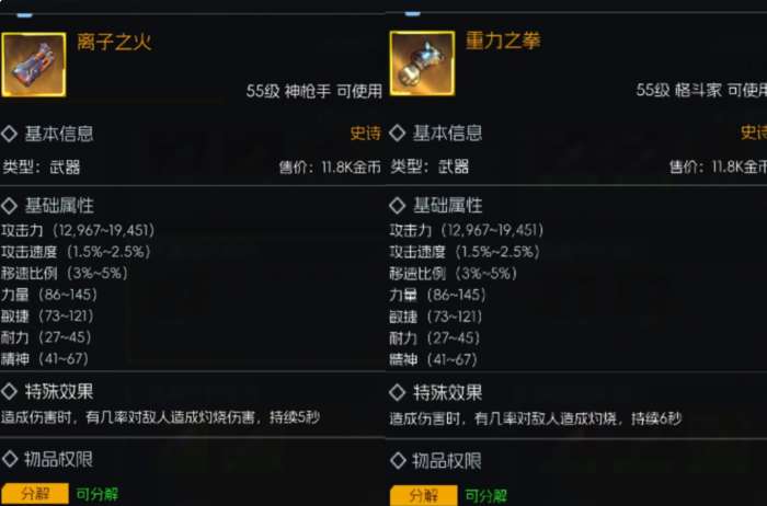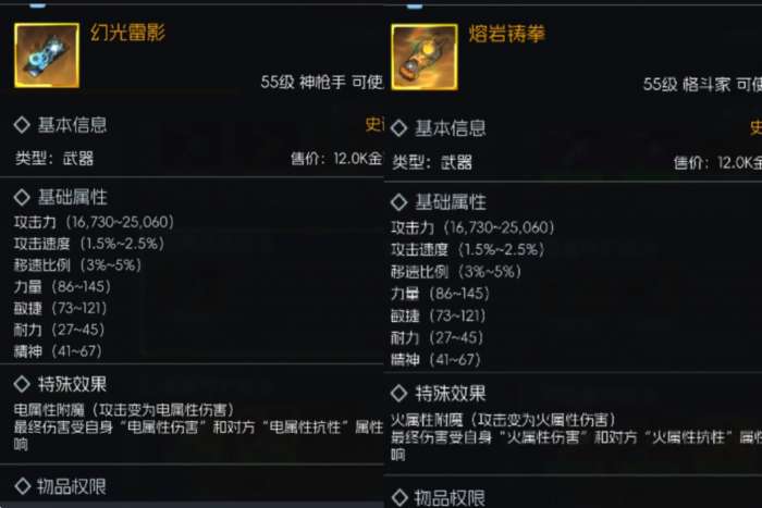 基础武器是玩家进入55级阶段的过渡装备,代表性的有汉娜-裂空梦影、黄帽-龙骨之魄。此类武器的基础属性比较均衡,可以通过普通打造或者深渊副本掉落获得,性价比较高。特殊效果分别是流血和减速,虽然伤害力小,但是在初期副本以及PVP中却能发挥作用。入门装备可以积累材料、获得经验,为之后获取更高级的装备做准备。