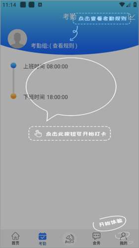 2、点击考勤,能够实时上班和下班打卡,简单方便