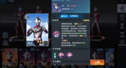 在队伍中,核心的输出就是主站位,会直接决定整体的上限。在选择主战角色时,建议先看一下稀有度,自然应该挑选ssr级别的角色。如果稀有度是相同的,那就需要选择星级更高的。但如果两者是在同一个水平就可以选择爆发型的角色,例如迪迦复合型,还有捷德。这一类型在短时间内就可以打出爆发性的伤害,可以击破敌方的核心,扭转战局。例如迪迦复合型三星就有很不错的战斗力。哉佩利敖光线必杀技能就成为了输出利器,在交叉蓄力之后释放一个超高光热线,可以针对前方单体目标造成450%的技能伤害,还可以额外的提升15%的暴击伤害以及暴击率。