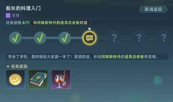 这个支线是冲烹饪的玩家一定要做的,虽然他会耗费你大量体力,但是大部分体力都会用酒来弥补你,相当于只用了很少的体力就达到了5级烹饪。但如果不是准备参与贩卖料理的玩家,那么前期浪费时间在这个上面就很不划算了。