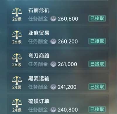 一次可以接取5个任务,3个伦敦2个阿姆斯特丹,顺路的同时,利润也不低,而且礼盒还有可能开出来星书和商业技能经验书,都是非常实用的道具。