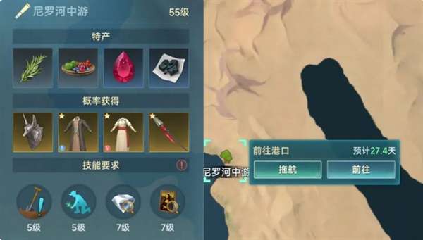 如果是更想提升等级的玩家,那么我推荐第二天开始就根据你当前冒险学科优待选择对应的地点练级,或者如果你对陆地战斗更感兴趣,那么任意选择比你当前冒险等级高20级的地图就行了。只需要注意一点的是,尽量在35级以前,越早越好前往尼罗河中游