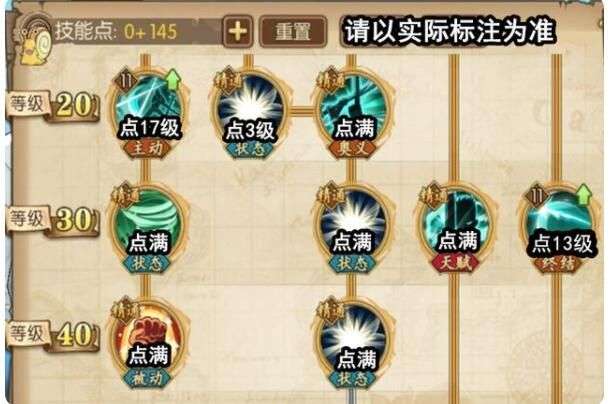 在尽量用光技能点的情况下,主用的技能可以分到17级,不用的终结技点前置5级,备用的可以分到13级。一开始先点11级,后续等技能点跟上来之后,再补点等级。