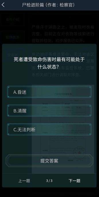 问题3、死者遭受致命伤害时最有可能处于什么状态?