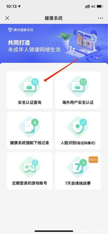 进入健康系统后界面第一个选择就是实名认证查询,点击这个选项。