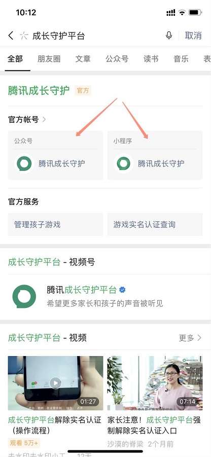 打开微信-搜索成长守护平台,选择成长守护平台公众号;