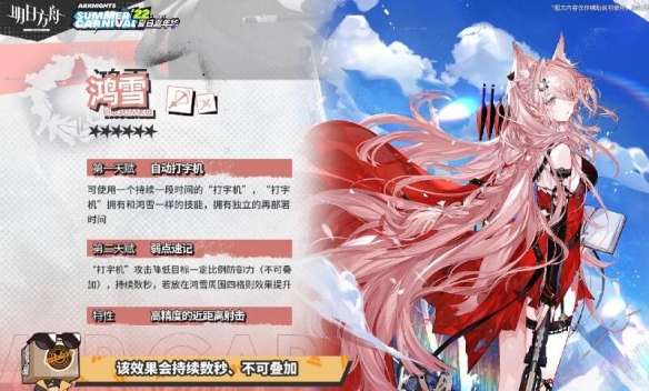 以上就是关于《明日方舟》鸿雪技能介绍的全部内容了,希望可以帮助到有需要的玩家掌握具体的信息。