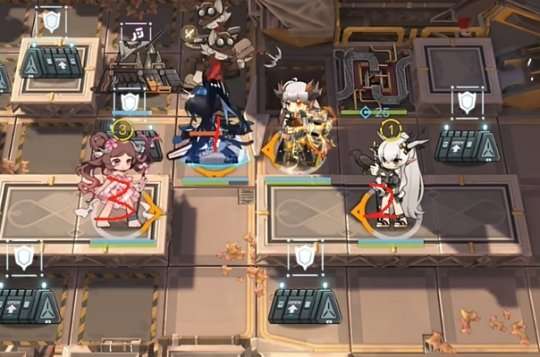 最后在下路位置补上④ 星熊,⑤ 拉普兰德(向左)即可。