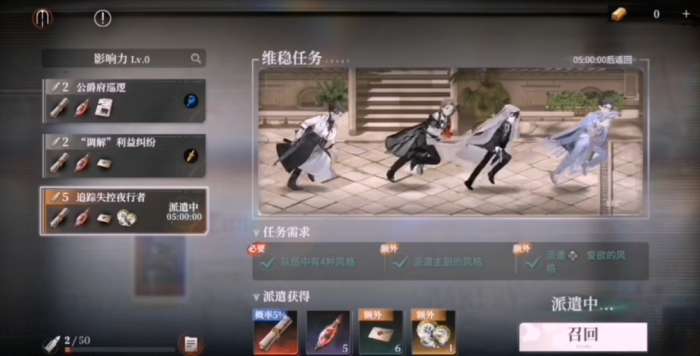 这个游戏的派遣任务同样也是选择合适的角色外出解决任务,相较于正式的主线任务而言,派遣上的任务相对来说简单很多,玩家只需要选择好角色即可。