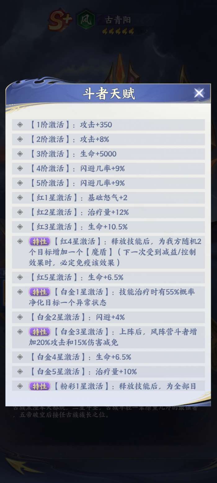 古青阳的天赋系统,主打的就是团队的辅助,以及逐步强化生存。目前对于大部分玩家来说。一旦处于这样的情况下,之后能够拥有不错的基础条件,而当他的星阶逐步得到升级之后,其实他自身的实力也就会加强,当然在整个队伍当中也能够起到关键性的作用。