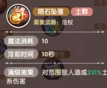 在达到二转之后,还可以解锁一个修炼技能,可以根据自身元素需求来附加一定的伤害增益效果,群体的攻击手段也会更多一些,这个效果的话,在目前的日常挂机以及清怪效率当中也是最高的,而且它上面修炼的效果可以增电伤,也就是提高电系魔法35%的伤害,如果是陨石坠落这个技能的话带来的则是土群的伤害,对范围之内的敌人都会造成231%的土系伤害,当然其中一般搭配的武器都是法杖这个能力,如果大家选择魔导师职业要对应高阶元素魔法的话,那么元素身上这个分支会更适合大家去进行转职。