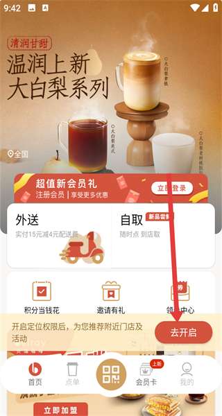 软件提交 专题合集 热门手游贝瑞咖啡app怎么开启定位功能,在打开App后,可以通过点击同意按钮,进入使用,在进入到应用首页中时,可以点击去开启按钮,进行开启定位权限功能,在出现开启定位功能弹窗时,点击马上去开启按钮,即可完成开启操作。
