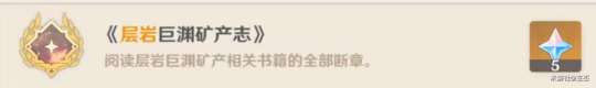 4、在层岩巨渊阅读《层岩巨渊矿产图鉴》、《层岩巨渊「灵石」调查书》、《层岩巨渊矿产报告》三本书,成就——《层岩巨渊矿产志》