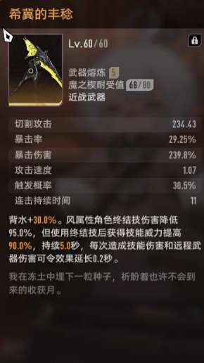 那从实力这一方面来看,也可以对比一下辉珀刃,这一个武器获取真的是一点门槛都没有,新手在走完流程之后就可以获取。后期如果觉得不够用,也可以到卡池里面抽卡获取。对于玩家而言,很适合用来开荒,在暴击的时候就可以有机会提升神智。对于一开始比较缺能量释放技能的新手来说,这就如同是救命稻草,而且这武器一点都不会挑人,不管是哪一个角色都可以用来过渡,真的还是很舒服的。