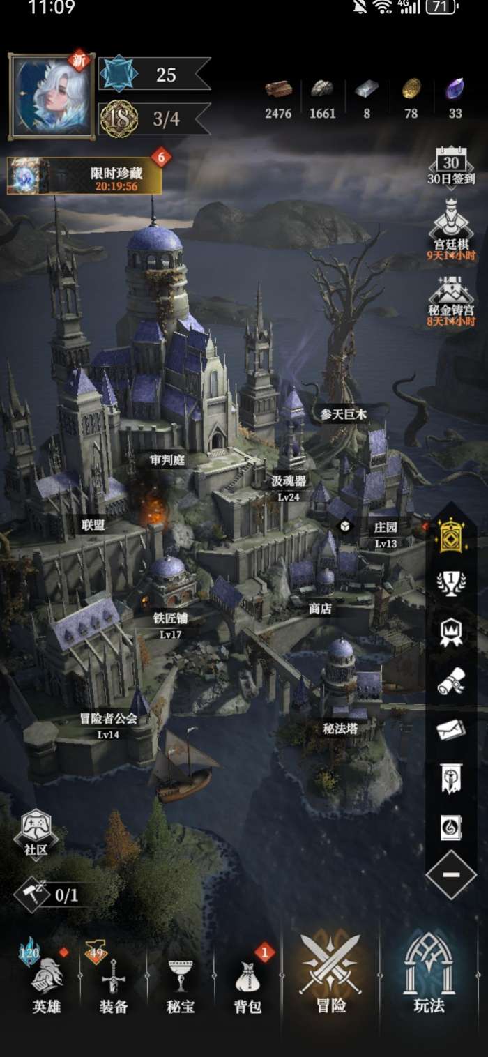 建筑升级顺序:招魂塔>庄园(资源生产核心)>铁匠铺(提升装备品质)>冒险者公会,其中公会升至18 级可每日接 12 个任务,单日收益达 6000 点;