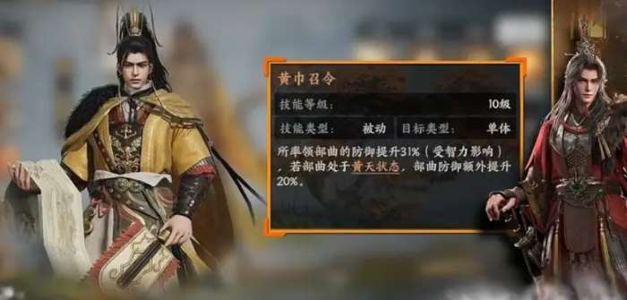黄巾阵营当中的组合武将就是张角、张宝、张梁,这三个武将为核心的防御型阵容就叫做黄巾盾阵容,其中张角作为主将坐镇中枢,其技能组完美诠释了何为“攻守兼备”。核心主动技“黄天当立”兼具即时伤害与防御强化双重功效,释放瞬间即可对敌方造成打击,同时为全军施加持续6秒的防御增益,此举有效缓解前排承压困境,更具战略意义的是诳时惑众这项被动特质,每当张角完成普通攻击后,将触发概率性群体嘲讽效果,最多可笼罩5名敌军目标,强制其攻击自身达5秒之久。