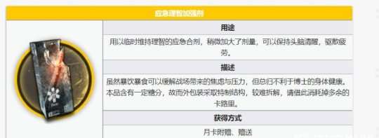 应急理智加强剂是一种理智药剂,可以通过充值月卡附赠或赠送获得。