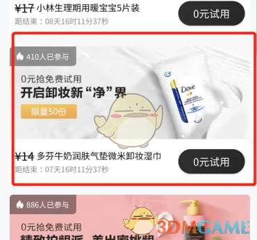 2、在“0元试用”专区选定心仪的试用产品,以图中产品为例;