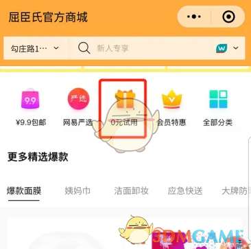 1、进入到屈臣氏官方商城首页,找到“0元试用”专区;