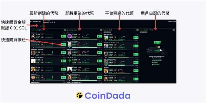 Pump.Fun 也推出了适合进阶交易的 Advanced 页面,在此页面用户可以快速过滤有潜力的代币,筛选出自己的口袋名单,并且一键买入。 其中