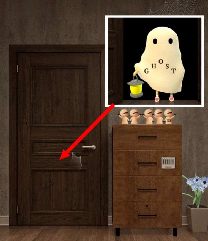 9.来到小房间内,点击鬼魂,记录下鬼魂每次发光时的位置为【中-上-下-中-下】