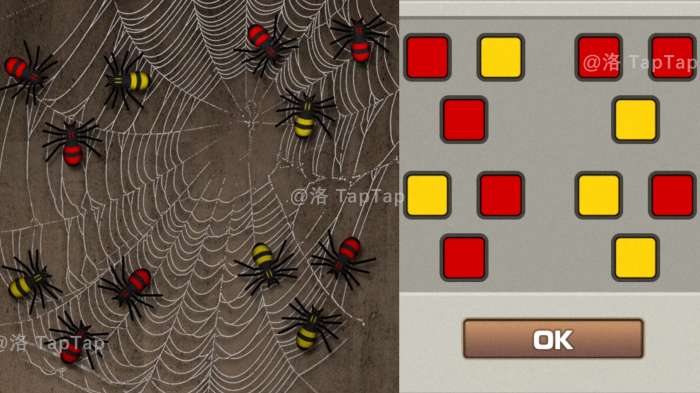 3.根据【1】中的蜘蛛颜色和分布,调整木格子上机关;打开木格子,获得【破损的画】