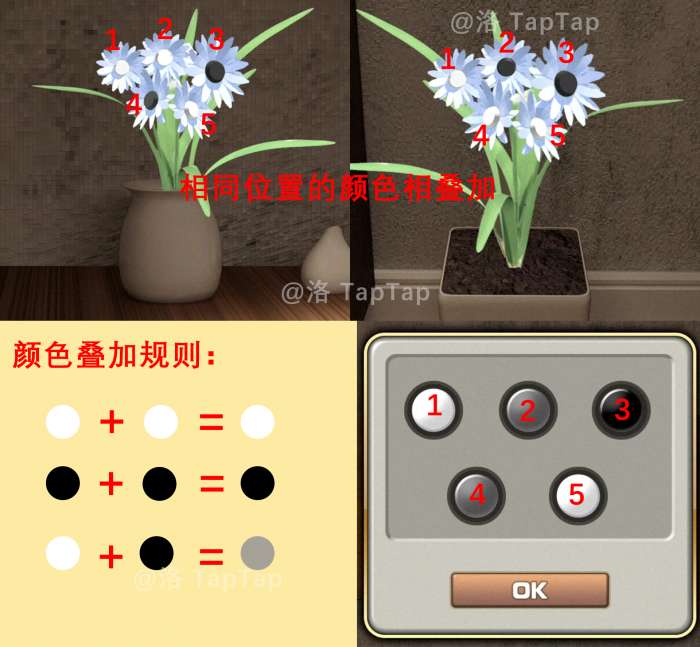 27.将【25】中两株植物的花蕊颜色叠加,调整柜门上机关;打开柜门,获得【火柴】