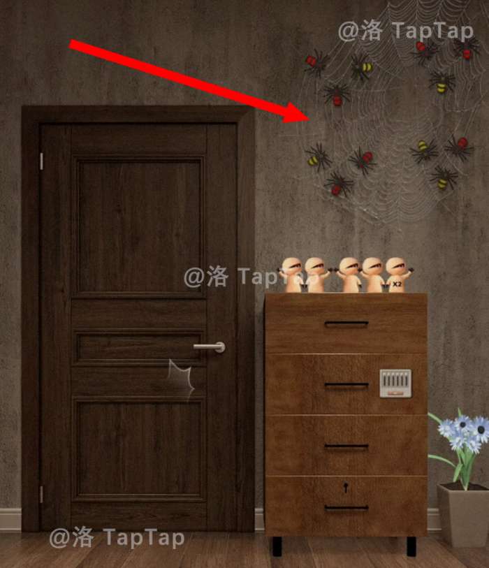 1.点击大门右边的蜘蛛网,观察蜘蛛颜色和布局