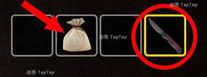 18.在物品栏点击【匕首】(获取方式详见【11】)的状态下,点击物品栏中的【布袋】,布袋被划开,获得【黄豆】