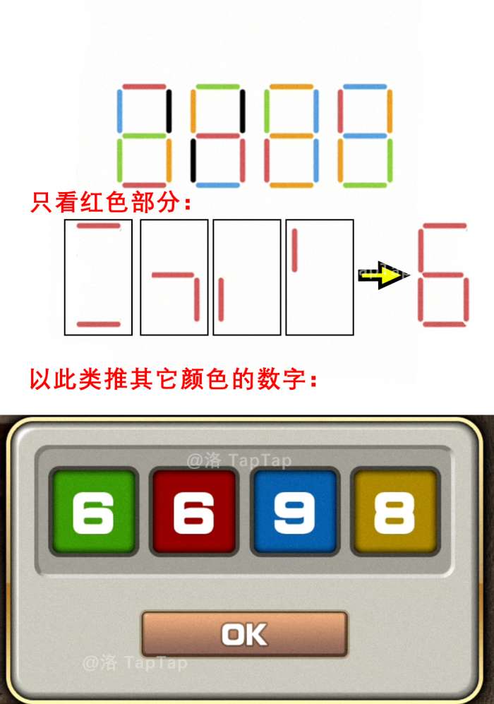 8.将【6】中【纸条】上同颜色的壁画提取出来组成数字,可以得到【绿6,红6,蓝9,黄8】;打开门,进入小房间