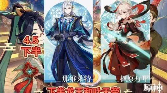 5、卡池角色复刻安排:上半卡池确认了是千织和荒泷一斗,没有改动;下半卡池那维莱特和枫原万叶,流水基本是寄希望于下半卡池了。