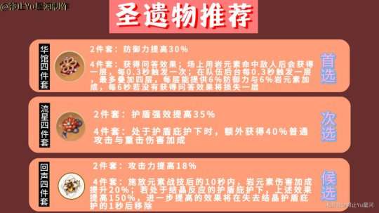 关于“华馆”:目前是最适合且最搭配的一套,首先该圣遗物能让一斗的防御与伤害最大化;