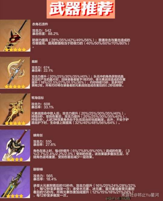关于“聊聊棒”:此武器与螭骨剑一样都是四星里面带有高贵的暴击词条,但其中的特效对于一斗没有任何用处,倘若上述武器都没有的情况下可以选择这把来过渡一下;