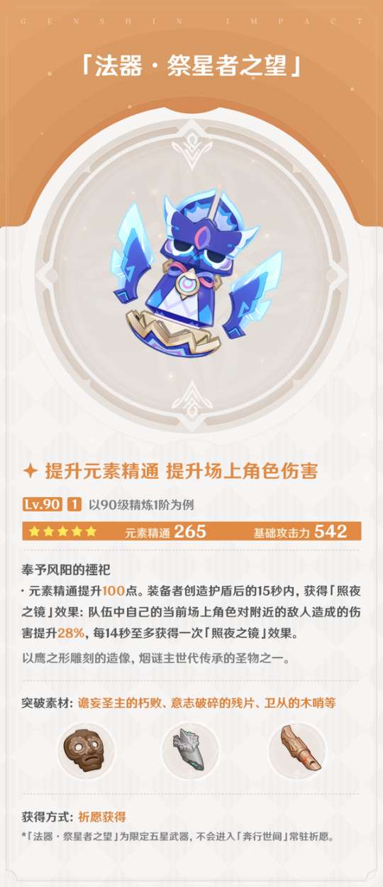 ★武器祈愿:「双手剑·炎曜千阳」&「法器·祭星者之望」(1-1 11:00~1-21 17:59)