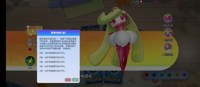 甜冷美后的核心技能是青草场地,这就是作为团队核心的证明,这一个技能可以让全体的队友在一瞬间恢复10%的最大生命值,还能持续提供自身攻击力的治疗,有效降低敌方全体6%的怒气回复速度。这一个技能还是很有优势性的,也就意味着在对战的过程中,它并不是只是单纯性的治疗手段,可以压制敌方的怒气循环,然后创造出更多的战术优势。在PVP的战场上,一个满级的青草场地,就可以直接打乱敌方的输出节奏。