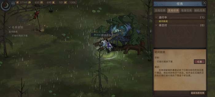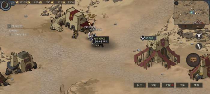 4、战斗结束后触发第二段任务:找到红石城旁边的【卫兵】对话询问奇怪行商躲藏的位置