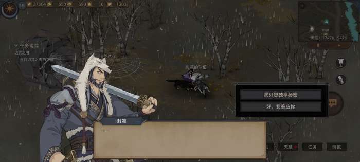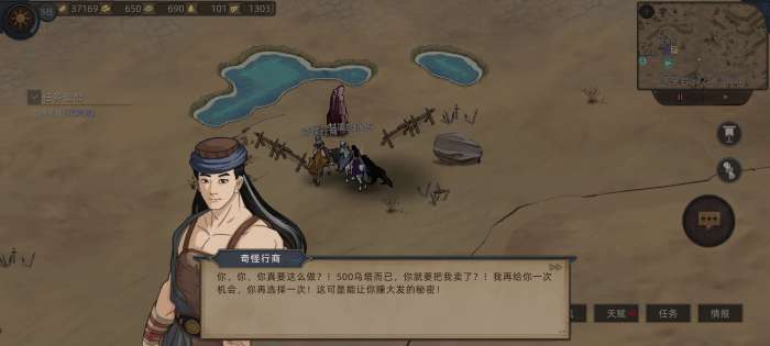 6、在这里任务已经接近尾声了,跟奇怪行商对话会有两个选项【难度:★★★放过他】【难度:★把他交给雄鹰部落】