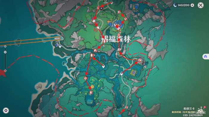 「欢声飞羽」收集路线·赐福森林(该路线共计15处「欢声飞羽」):